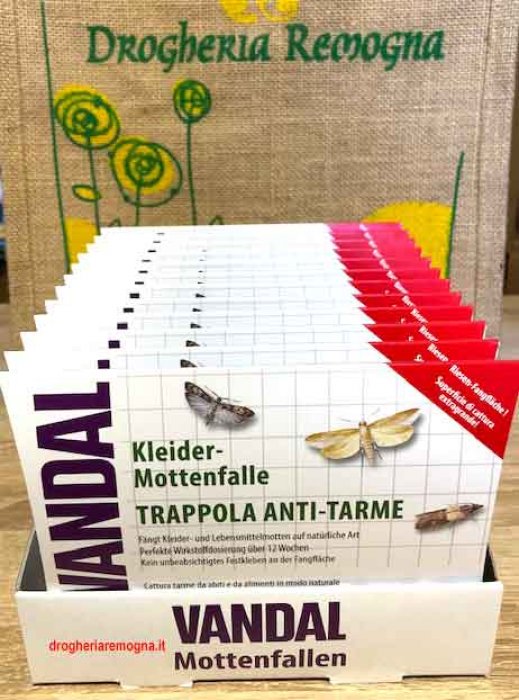 Cattura in modo naturale tarme dei tessuti e farfalline degli alimenti.  Il perfetto dosaggio del principio attivo agisce per oltre 12 settimane. Superficie di cattura adesiva estremamente grande. Le tarme maschilii vengono attirate in trappola dai ferormoni  (ormoni sessuali identici a quelli prodotti in natura delle tarme femmine). Vandal trappola antitarme si può posizionare in tutti gli ambienti perché priva di insetticidi. Una trappola e sufficiente per un ambiente e 30 m².