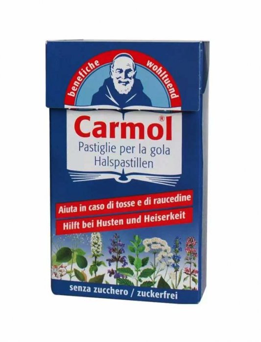 Le "storiche" pastiglie Carmol per la gola calmano e rinfrescano le prime vie respiratorie. I preziosi principi attivi portano sollievo alla gola irritata. Le  pastiglie gommose alle erbe Carmol dall'azione rinfrescante e balsamica, con erbe specifiche per gli stati infiammatori della gola.